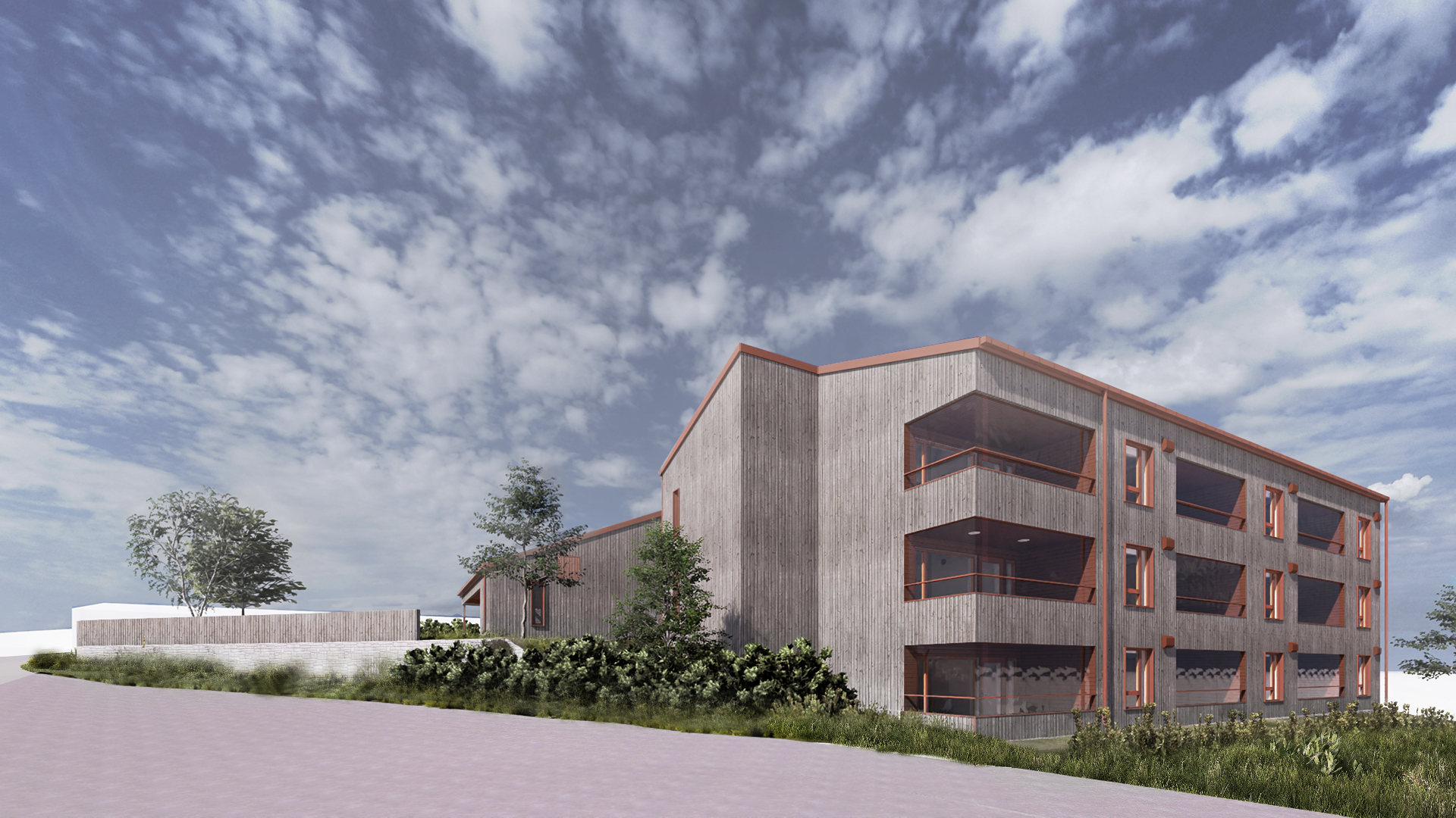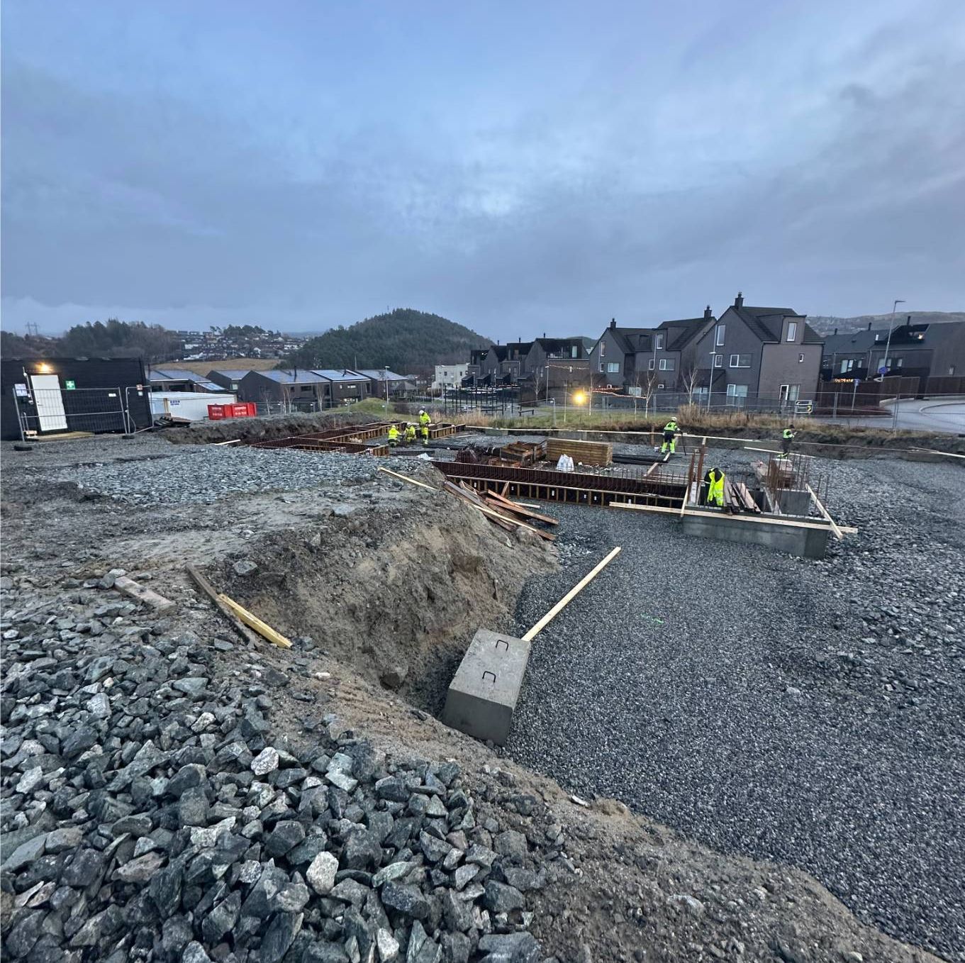Moment Betong bygger råbygget - prosjektert og utført med stedstøp betong, stålkonstruksjon og betongelementer. Vi takker Helvik Hus for oppdraget.