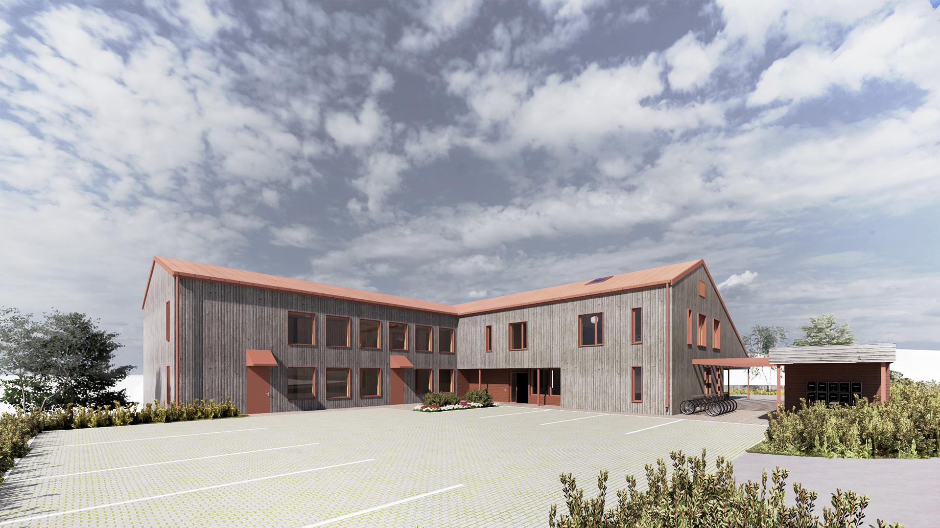 Prosjektet er på ca 1 150m2 fordelt på 3 etasjer og oppføres med fundamenter av plasstøpt betong, stålkonstruksjoner og betongelementer.